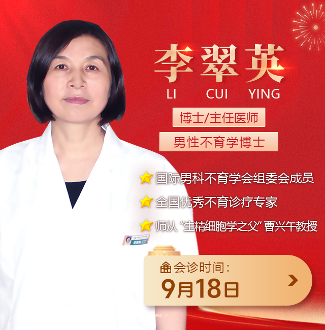 李翠英博士:与“生精细胞学之父”曹兴午教授并称我国男性不育“互证治疗”的“黄金搭档”,长期从事不孕不育的研究和临床工作,在中医中药领域拥有很高的造诣。善于利用传统医学精华,中西医合璧治疗少精症、弱精症、死精症、无精症、不射精症、逆行射精症及睾丸发育不良等男性不育疑难病症。在治疗男性不育方面拥有丰富的诊疗经验及独特的疗法。点击在线咨询,预约专家会诊名额